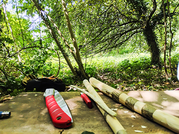 Dort sägen wir frisches Grünholz und schnitzen daraus Nützliches und Verspieltes – kleine Alltagsgegenstände, Fantasietiere, Werkzeuge oder Spielsachen.