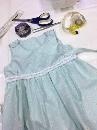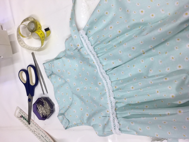 übliche Nähutensilien, wie Stoffschere, Maßband, Stecknadeln, Nähnadeln, Schneiderkreide, Ideen, Enthusiasmus und Geduld.