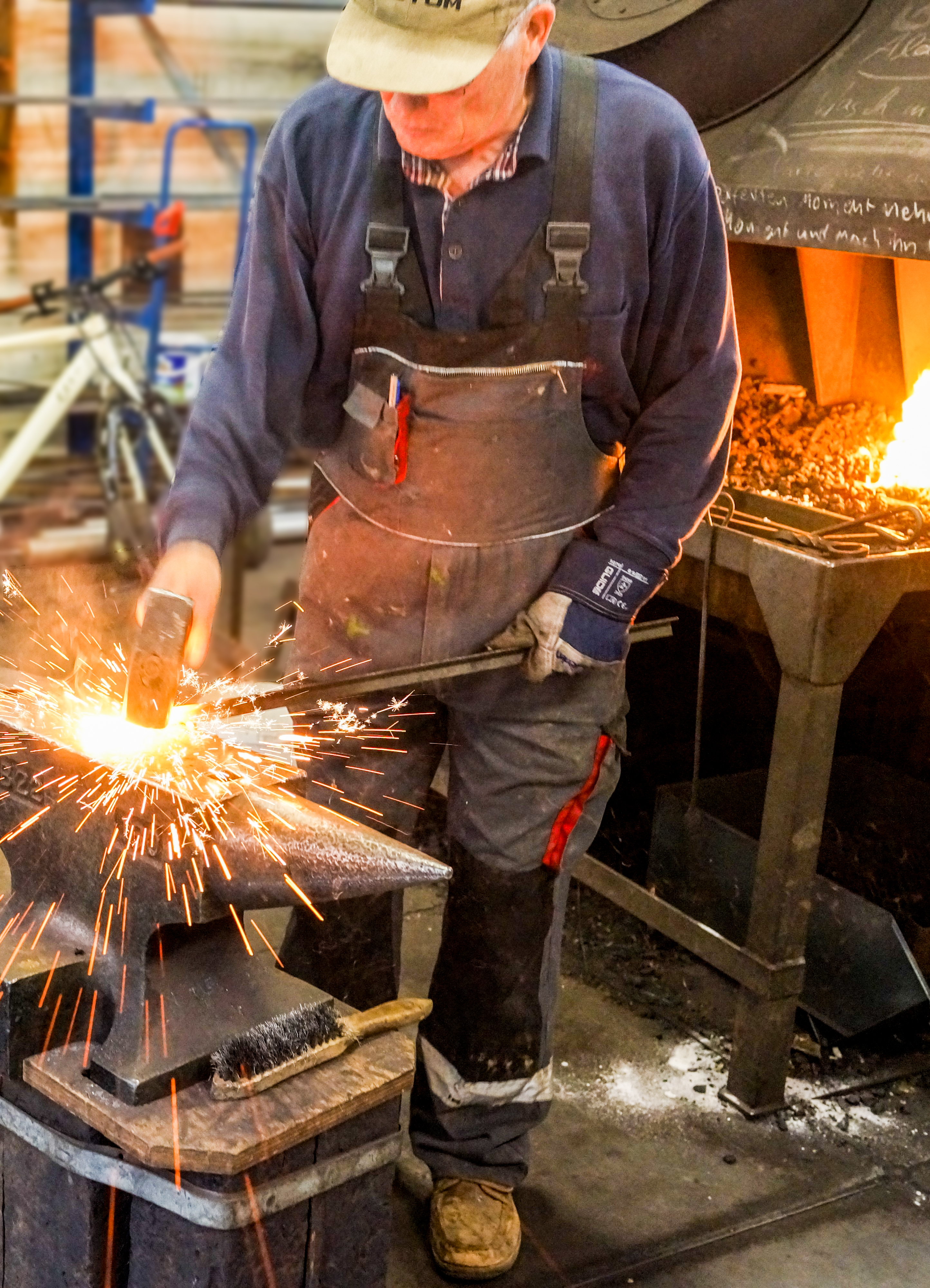 Schutzbrillen, Handschuhe und Lederschürzen sind vorhanden, bitte an unempfindliche Kleidung und Schuhe denken (Funkenflug)!